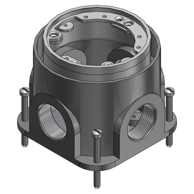 Single Gang Flush Service Floor Box, 64 Cubic Inches, Length 5-1/8 Inches, Width 4-1/4 Inches, Depth 4-1/4 Inches, Hub Size 1 Inches, Aluminum