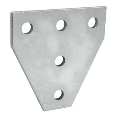 Plate, Five Hole Tee, Length 5-3/8 Inches, Width 5-3/8 Inches, Hole Diameter 9/16 Inch, Electro-Galvanized Steel
