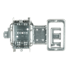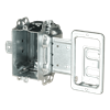 Power/Communication gangable box, 3 in height x 2 in width x 2-1/2 in depth with 16 cubic inches volume. Clamps for armoured cables or for nonmetallic sheathed cables. Mounting strap for steel stud installations with integrated low voltage cable support. Mounting strap positionned for two layers of 1/2 in drywall application.