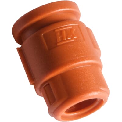 Hinged Connector Interface Fitting for High Temperatures, Straight, 3-Way AMP Junior or Mini Timer Connector to Conduit, Conduit Size NC10/NW8.5, Operating Temperature -40 to 185 Degrees Celsius, RoHS Compliant, IP40 Rating, Medium UV Protection, High Temperature Polyamide (Nylon) with Dark Orange Finish