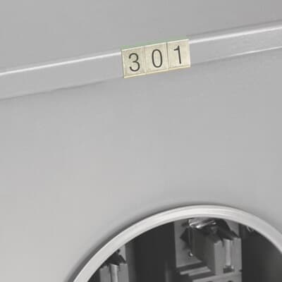 Identification markers. Clipped to the upper lip of the enclosure. provides permanent customer identification. Letter K.