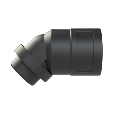 PMAFIX 45 Degree Black Elbow with Metric Threads, Elbow Material - Polyamide 6, Thread Material-Nickel-Plated Brass, Thread Size - M25x1.5, Conduit Size NW - 23, Thread Length - 11
