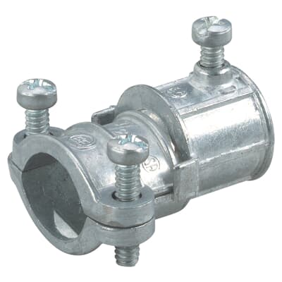 Coupling, Combination, Trade Size 1/2 Inch - 1/2 Inch, Clamping Range 0.60 Inch - 1.00 Inch, Length 1.71 Inch, Die Cast Zinc, EMT to Flex Set-Screw Type