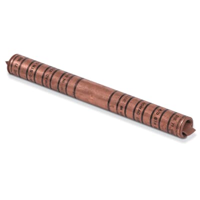 Copper Full Tension Compression Splices, wire size 4/0 Stranded Copper, length 8-3/8 inch, Outside Diameter 7/8 inch, installing dies 71, 840, 168. Pre-filled with Oxide Inhibitor and Capped