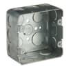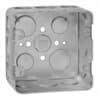 Two-Gang Drawn Style Outlet Box, 30.3 Cubic Inches, 4 Inches Square x 2-1/8 Inches Deep, Welded Construction with 1/2 Inch and 3/4 Inch Eccentric Knockouts and Ground Bump, Pre-Galvanized Steel, For use with Conduit