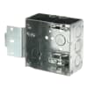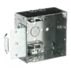 Square Box, 30.3 Cubic Inches, 4 Inch Square x 2-1/8 Inch Deep, 1/2 Inch and 3/4 Inch Eccentric Knockouts, Pre-Galvanized Steel, Welded Construction, MS Bracket and Armored Cable Clamp (C-3), For use with armored/metal clad cable.