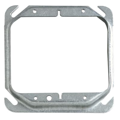 Two Gang Square Device Cover, 7.3 Cubic Inches, 4 Inch Square x 5/8 Inch Raised, Pre-Galvanized Steel, For use with Dry Wall, pack of 25, for Retail