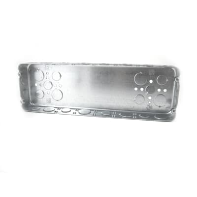 Six Gang Drawn Style Box, 95 Cubic Inches, 14-1/16 Inches Long x 4-1/2 Inches Wide x 1-5/8 Inches Deep, Drawn Construction with 1/2 Inch and 3/4 Inch Knockouts, For use with Conduit