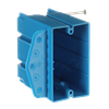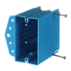 One Gang Multipurpose Electrical Box, Volume 24.5 Cubic Inches, Length 3-1/4 Inches, Width 3-1/2 Inches, Depth 2-7/32 Inches, Color Blue, Material PVC, Mounting Means Captive Nails, Side Flange, Internal Screws