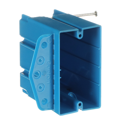 Carlon’s most versatile non-metallic box ever. Single-gang design that works on wood or steel studs; in new or old work; with simple, fast installation; vertical or horizontal