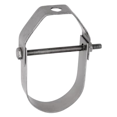 Designed to support non-insulated, stationary lines from above allowing for approximately 1" to 1 1/2" of vertical adjustment after the pipe is in place. The lower nut (not furnished) adjusts the pipe line to the proper elevation, the top nut (not furnished) prevents loosening due to vibration, and must be tightened securely to assure proper hanger performance. |