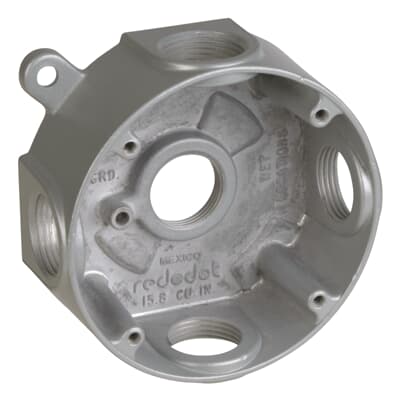 Description: 4 IN ROUND 5 HOLE.75 IN HUB BOX