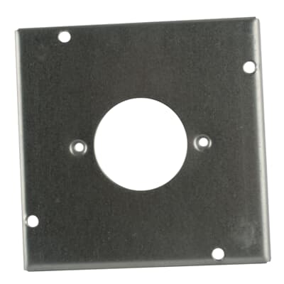 Square Box Surface Cover, 7.5 Cubic Inches, 4-11/16 Inch Square x 1/2 Inch Deep, 1-3/4 Inch Diameter Hole, Galvanized Steel, For use with #3330-30A 250 V Twist-Lock Receptacle