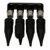 Aluminum Flood-Seal, Mechanical Connector with Streetlight Option, Dual Rated, PVC Insulated - 1/8 inch thick. Cable Range Feeder Outlet S/L #6 to 350 kcmil, 4 Outlets, Length 6-3/4 inch. Includes Three Insulating Sleeves and One StreetLight Cover - MRS350SL, Four Screws 11/16-16 x 53/64 inch and Packet of Silicone Grease.