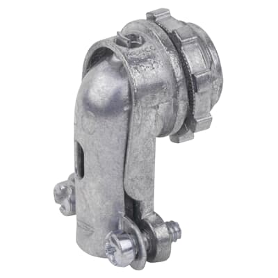 90 Degree Squeeze Type Connector, Conduit Size 1/2 Inch, Cable Opening 0.750 Inches - 0.937 Inches, Height 1-11/16 Inch, Width 1-13/16 Inch, Material Zinc Plated Malleable Iron, For use with Armored Cable/Flexible Metal Conduit