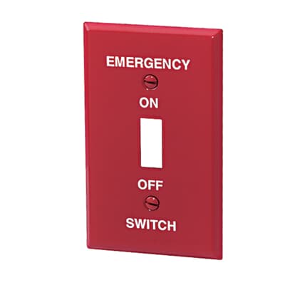 Description: PLAQUE INTERRUPTEUR URGENCE ROUGE