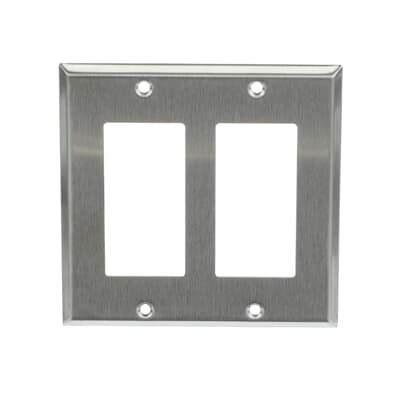 Plaque murale en acier inoxydable. Plaque pour disjoncteur-détecteur de fuites à la terre (DDFT) / Interrupteur Decora. 2 groupes.