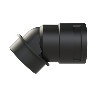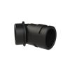 Coude métrique noir IP66, 45 degrés en polyamide 6. Filet métrique M50x1,5. Pour conduits largeur nominale 36, métrique 40. Longueur du filetage 19 millimètres.