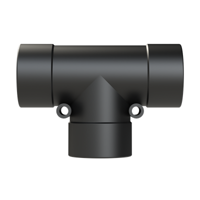 Connecteur en T en polyamide 6 noir, IP67. Entrée pour conduits largeur nominale 29, métrique 32. Sortie pour conduits largeur nominale 29, métrique 32.