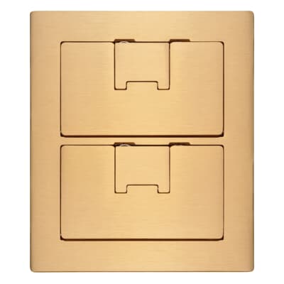Couvercle en thermoplastique 2 groupes pour boîte de sol rectangulaire. Couleur brun. Rebord de tapis inclus. 7,13 pouces de large x 8,25 pouces de long.