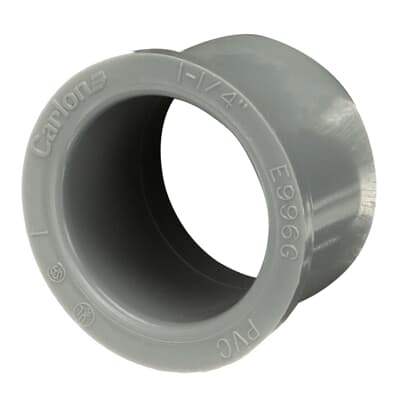 Adaptateur de jonction en PVC gris pour enceintes. Grosseur nominale 1-1/4 pouce. Diamètre extérieur 1,66 pouce.