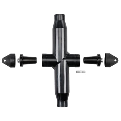 600 Amp, 2 Way Vault Strecher Kit, 15/25KV, Cable Insulation Diameter 1.370 inch to 1.630 inch. Aluminum Compression Lug. Conductor Size AWG or kcmil, Compressed Stranded 700/750 /Compacted Solid 900.