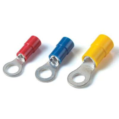 Cosse à anneau en vinyle. Calibre de fils 16-14. Trou de boulon #6. Emballage de 1000.
