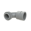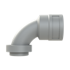 Coude métrique arrondi 90 degrés, métal/polyamide gris. Filet métrique M32x1,5. Pour conduits largeur nominal 29, métrique 32. Longueur du filetage 13 millimètres.