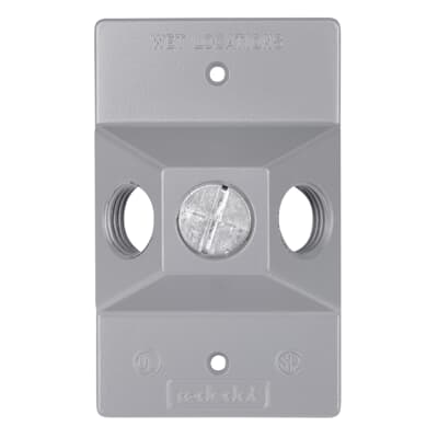 Couvercle rectangulaire pour porte-ampoules en aluminium 1 groupe. 4-1/2 pouces de long x 2-13/16 pouces de large. Un trou fileté de 1/2 pouce. Argent.