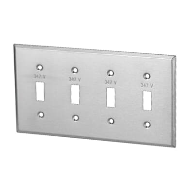 Plaque murale en acier inoxydable. Interrupteur à bascule 3 groupes. 347 volts.